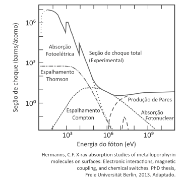 Efeito fotoelétrico, 10³ barns/átomo | Espalhamento Compton |