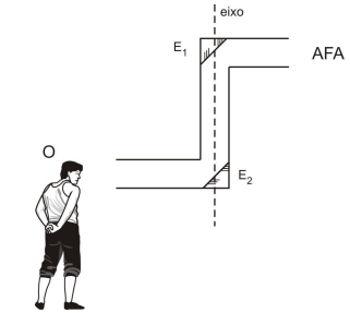 Nessas condições, a opção que melhor representa, respectivamente, a imagem da palavra AFA conjugada pelo espelho E1 e a imagem final que o observador O visualiza através do espelho E2 é
