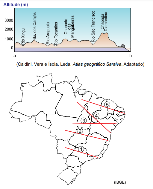A questão está relacionada ao perfil topográfico e ao mapa apresentados a seguir.