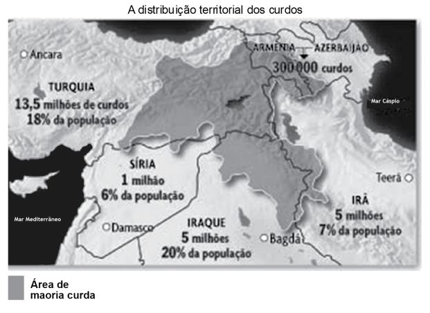 A distribuição territorial dos curdos mostra uma característica comum em vários países, que é a existência de nações sem estado.