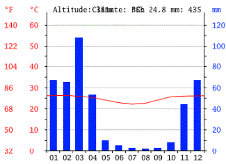 Analise o climograma a seguir, obtida através do portal Climate-Data: