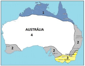 1 – Árido e Semiárido / 2 – Temperado Mediterrâneo / 3 – Temperado Oceânico / 4 – Tropical.