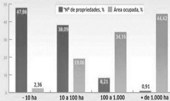 As grandes propriedades, ou seja, com mais de 1 mil hectare, representam mais da metade de todo território nacional.