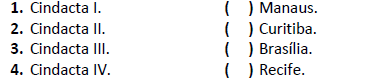 O sistema de controle do espaço aéreo brasileiro (eletrônico quanto aos voos), chamado de Centro Integrado de Defesa Aérea e Controle de Tráfego Aéreo (CINDACTA), foi importado da França, são unidades de controle de tráfego aéreo, comercial e militar, vigilância do espaço e defesa. Relacione adequadamente o sistema à sua respectiva área geográfica.