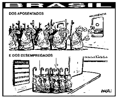 Essa charge, publicada na Folha de São Paulo, em 1998, revela alguns problemas presentes na realidade brasileira na década de 1990, EXCETO: