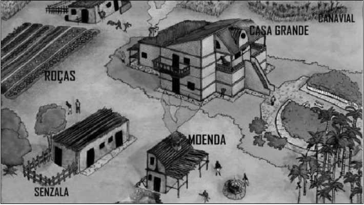 O engenho de açúcar no Brasil colonial designa o local onde foi produzido o açúcar durante o período colonial. Observe a imagem a seguir: