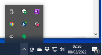 No sistema operacional Windows, em todas as suas versões, a área mais à direita da Barra de Tarefas exibe vários aplicativos que estão em execução em segundo plano. Veja a imagem a seguir: