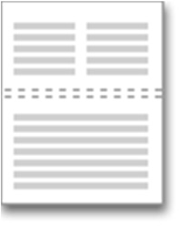 Considere-se que certo usuário do Microsoft Office 365 queira configurar, em um documento de texto desenvolvido no Word, duas colunas no topo e uma coluna na parte inferior da mesma página do documento, como apresentado na figura a seguir.