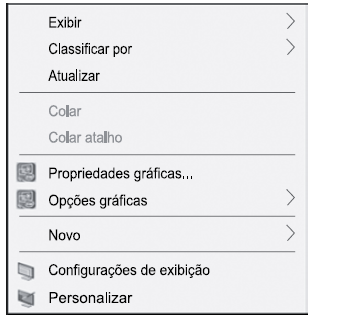 No sistema operacional Windows 10, em sua configuração padrão, um usuário clicou com o botão direito do mouse em um espaço livre da Área de Trabalho, e a seguinte lista de opções surgiu na tela.