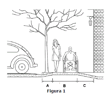 O acesso de veículos aos lotes deve respeitar os pressupostos da NBR 9050/2015, sendo necessário prever rampas em duas das três das faixas necessárias para uma boa acessibilidade. De acordo com a Figura 1 abaixo, assinale o nome das faixas que correspondem, respectivamente, às letras A, B e C.