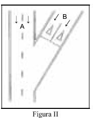 Na figura II à baixo, que ilustra o encontro das vias A e B e na qual as setas indicam o sentido de circulação, tem-se um exemplo de bifurcação à direita.