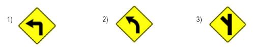 1) curva acentuada à esquerda; 2) curva à esquerda; 3) entroncamento oblíquo à esquerda.