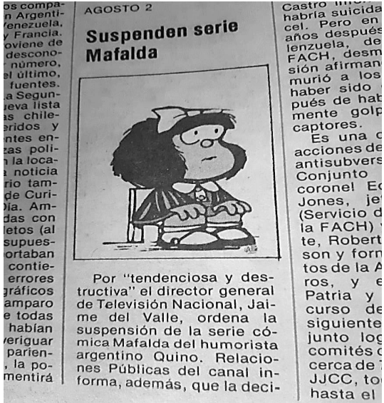 la trayectoria del personaje Mafalda, representada a través del género de la tira cómica, aumenta el pensamiento crítico en sus interlocutores y, por lo tanto, es criticada en momentos de censura.