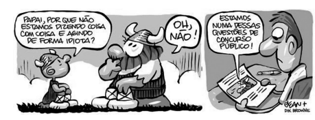 I. Ambos os textos utilizam a linguagem da qual são feitos para pensar essa própria linguagem, seja a tirinha que se autorreferencia, no texto I, seja o desenho que desenha a si mesmo, no texto II.