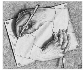 (Mãos Desenhando – M. C. Escher.) Disponível em: <http://miriancoelho.files.wordpress.com/2008/03/escher-drawinghands.jpg>.