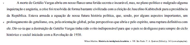 O emprego do pronome de primeira pessoa do plural em "nossa futura história política" (L.3) introduz no texto as pessoas do autor e do leitor.
