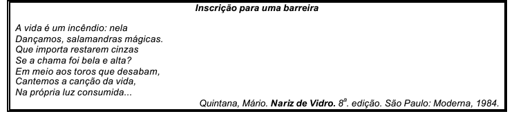 Como vimos, o texto de Mário Quintana tematiza a vida, fazendo reflexões sobre seu significado. O autor não usa uma linguagem comum, que tenha, apenas, a finalidade de informar. Por isso, podemos afirmar que a linguagem é