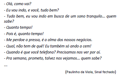 Leia os versos a seguir. Na letra da música de Paulinho da Viola, vemos uma conversação...