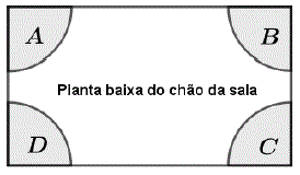 A figura a seguir representa a planta baixa do chão de uma sala. As regiões A, B, C e D representam aquecedores que serão colocados nos quatro cantos do chão dessa sala.