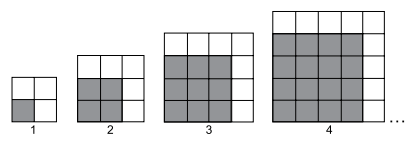 Observe a sequência a seguir determinada por quatro figuras. Toda figura é composta de quadradinhos escuros e de quadradinhos claros.