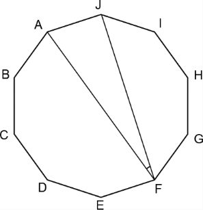 Na figura abaixo temos um decágono regular ABCDEFGHIJ. A medida do ângulo é igual a: