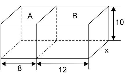 Uma peça de madeira maciça, no formato de um prisma reto de base retangular, foi dividida em 2 blocos, A e B, ambos também no formato de um prisma reto de base retangular, conforme mostra a figura, cujas medidas indicadas estão em centímetros.