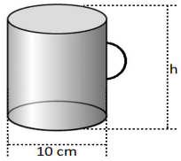 Para a fabricação dessas canecas havia a condição de que cada unidade deveria comportar 800 ml. Sabendo que 1cm3 = 1 ml, qual a altura que cada caneca deve ter para satisfazer essa condição.
