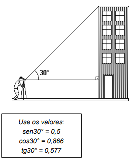 Um topógrafo foi chamado para calcular a altura de um prédio, conforme a figura abaixo. Para fazer isto, ele colocou um teodolito (instrumento ótico para medir ângulos) a 300 metros da base do prédio e mediu um ângulo de 30°. Sabendo que a luneta do teodolito está a 1,9 metros do solo, pode-se concluir que, dentre os valores adiante, o que melhor aproxima a altura do prédio, em metros, é: