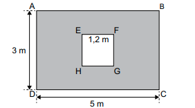 Em uma parede retangular ABCD, com 3 m de altura por 5 m de largura, foi colocada uma janela quadrada EFGH, conforme mostra a figura.