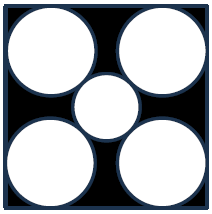Para fazer um trabalho de artes, um aluno precisa recortar 5 círculos de uma cartolina quadrada, conforme a figura abaixo, sendo 4 deles com raio igual a 2 𝑐𝑚 e um círculo menor com raio igual a 1,5 𝑐𝑚 . Sabendo que a cartolina tem uma área total igual a 81 𝑐𝑚2 e usando 3,14 para aproximação de 𝜋, a área da cartolina que esse aluno irá descartar equivale aproximadamente a,