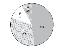 Uma escola de idiomas oferece cursos de inglês (Ι), francês (F), espanhol (E) e alemão (A). A porcentagem de alunos matriculados no curso de inglês é 4 vezes a porcentagem de alunos matriculados no curso de francês, conforme mostra o gráfico