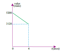 Se o valor de compra, hoje (t = 0), é de R$ 5.200,00, ele atingirá o valor mínimo daqui a