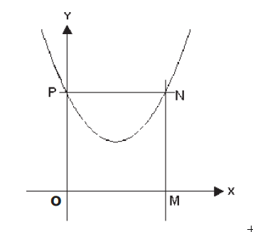 Na figura abaixo, estão representados um sistema de eixos coordenados com origem O, o gráfico de uma função real do tipo f(x)=ax2+bx+c e o quadrado OMNP, com 16 unidades de área. Sabe-se que o gráfico de f(x) passa pelos pontos P e N, vértices do quadrado, e pelo ponto de encontro das diagonais desse quadrado. Assim, o valor de a+b+c é