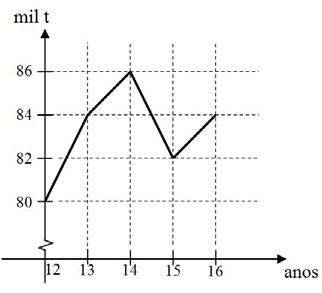 O gráfico representa, em milhares de toneladas, a produção no Estado de São Paulo de um determinado produto agrícola, entre os anos de 2012 e 2016. Analisando o gráfico, observa-se que a produção