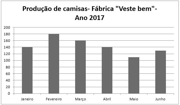 O gráfico a seguir mostra a produção de camisas da fábrica “Veste Bem” nos seis primeiros meses do ano de 2017.