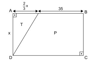 Um terreno retangular ABCD foi dividido em duas regiões, T e P, conforme mostra a figura, com dimensões indicadas em metros.