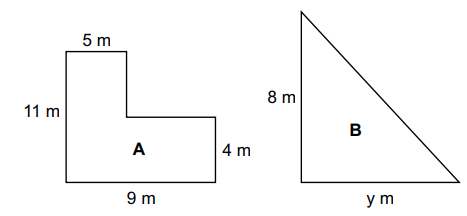 Sabe-se que a área do terreno B supera em 20% a área do terreno A. Desse modo, é correto determinar que o valor da medida y, em metros, é um número entre