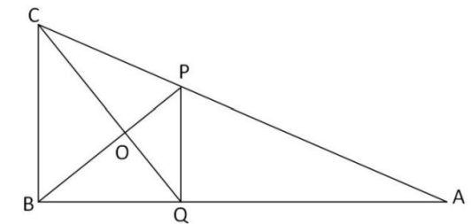 Na figura, ∆𝐴𝐵𝐶 é um triângulo retângulo, Q é o ponto médio de AB. QP é paralelo a BC. Sendo AC = 30𝑐𝑚, qual é a medida de PO?