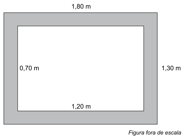 Uma tela retangular branca medindo 1,20 m de comprimento por 0,70 m de largura será centralizada num painel retangular cinza medindo 1,80 m de comprimento por 1,30 m de largura, conforme a figura a seguir.