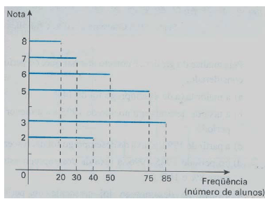 O gráfico a seguir indica a distribuição das notas de uma prova de português realizada na Escola São João, no Município de Felicidade Total, em 2007.
