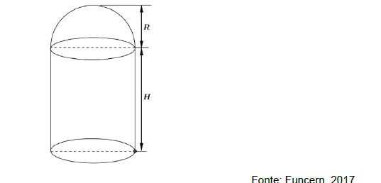 Deseja-se construir um recipiente que possui o formato de um cilindro circular reto conectado a uma semiesfera, conforme a figura a seguir: