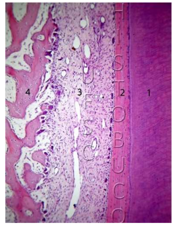 dentina radicular, cemento radicular, epitélio juncional e osso alveolar.
