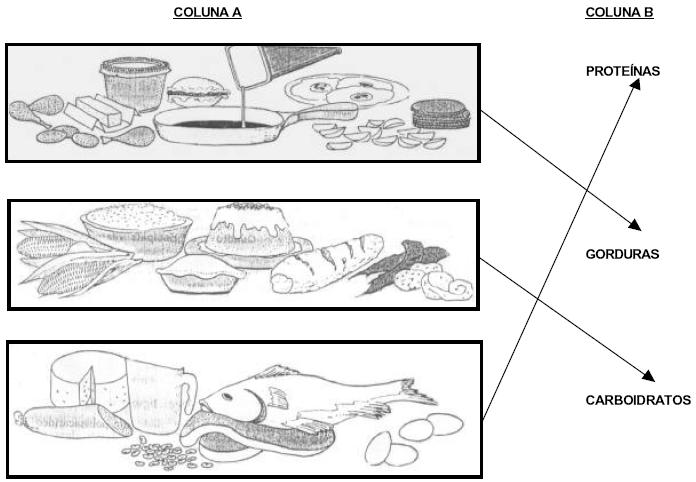 Na aplicação do exercício, ligar os alimentos da coluna "A" com a coluna "B", conforme a ilustração abaixo.