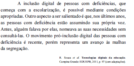 às pessoas cegas, autistas, com paralisia cerebral, deficiência