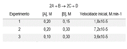 Considere os dados cinéticos da reação hipotética:
