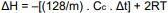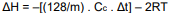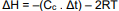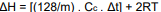 Considerando que uma massa m de naftaleno foi queimada em uma bomba calorimétrica (V constante) de capacidade calorífica Cc, (J/°C), indicando uma variação de temperatura Δt (°C), e que os gases são ideais e o volume dos sólidos e líquidos é desprezível, assinale a alternativa que apresenta corretamente a expressão da variação de entalpia de combustão (ΔH) do naftaleno.