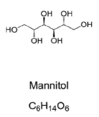 Figura 3. Fórmula estrutural do manitol. Disponível em https://pt. dreamstime.com/manitol-mannite-ou-f%C3%B3rmula-qu%C3%ADmica-do-a%C3%A7%C3%BAcar-manna-e-estrutura-esquel%C3%AStica-de-manga-is%C3%B4mero-sorbitol-utilizado-como-image209330436. Acesso em: setembro.2024.