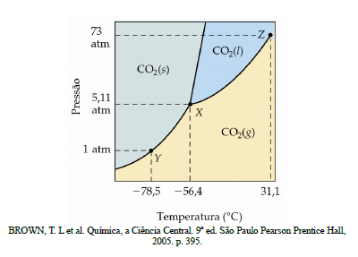 A figura a seguir mostra o diagrama de fases para o gás carbônico a baixas pressões.