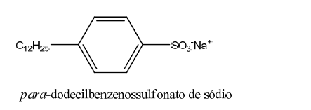 O composto orgânico para-dodecil-benzenossulfonato de sódio, cuja molécula é visualizada a seguir, é o componente ativo da maioria dos detergentes.