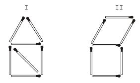 Movendo-se palito(s) de fósforo na figura I, é possível transformá-la na figura II.